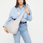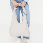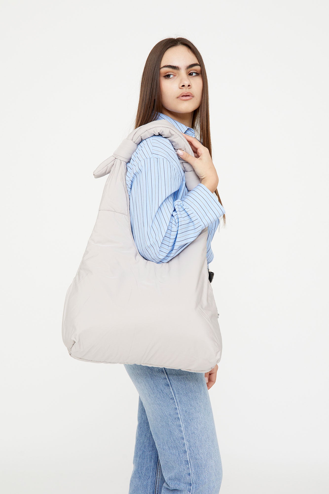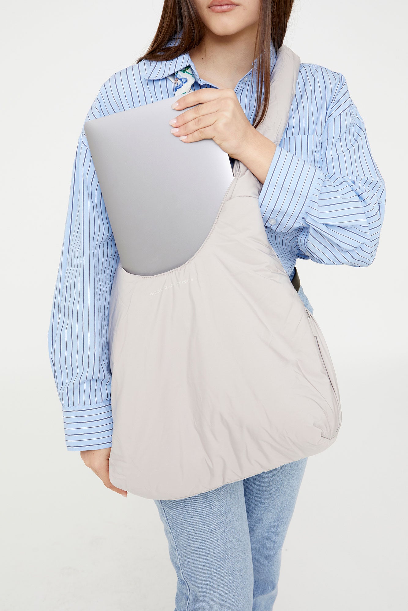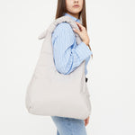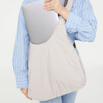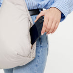 Bolso acolchado diseñado para ser utilizado tanto como bandolera como al hombro, gracias a sus lazos corredizos ajustables. Su tejido 100% hecho con poliéster reciclado y acolchado lo hacen muy ligero, suave y agradable al tacto. Cuenta con un compartimento principal de gran capacidad y un bolsillo con cremallera para objetos importantes o pequeños. Cierre con imán.