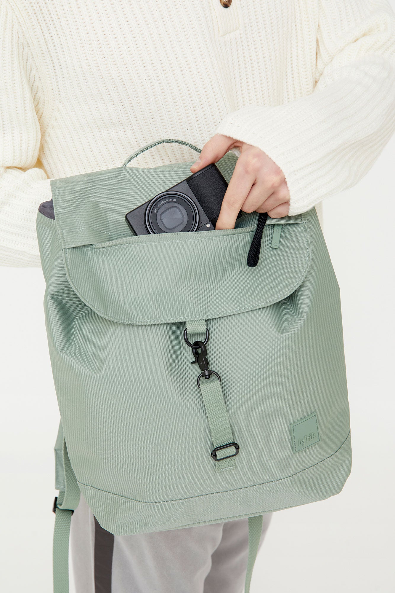 Su forma redondeada y la gran solapa de su cierre definen el modelo más icónico de la marca.