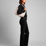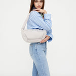 Bolso bandolera con forma redonda, en versión mini con asa circular sin costuras para un look moderno.