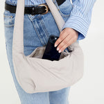 Confeccionado en tejido reciclado suave y sutilmente texturizado, se cierra de forma segura con una cremallera superior para mantener tus pertenencias a salvo. En el interior, hay un bolsillo adicional con cremallera para facilitar la organización.
