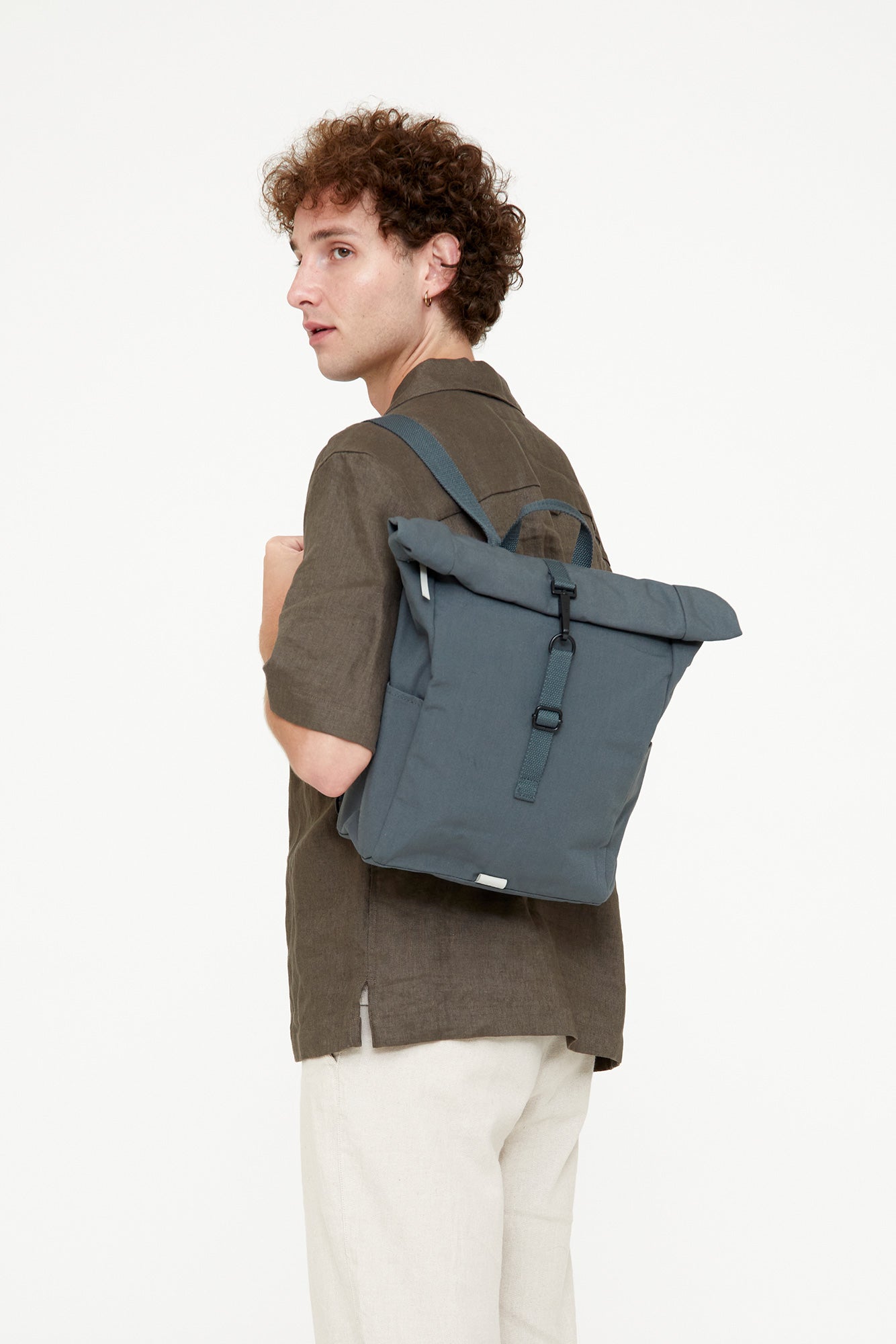 - Roll-top closure with magnets, zip and metal hook