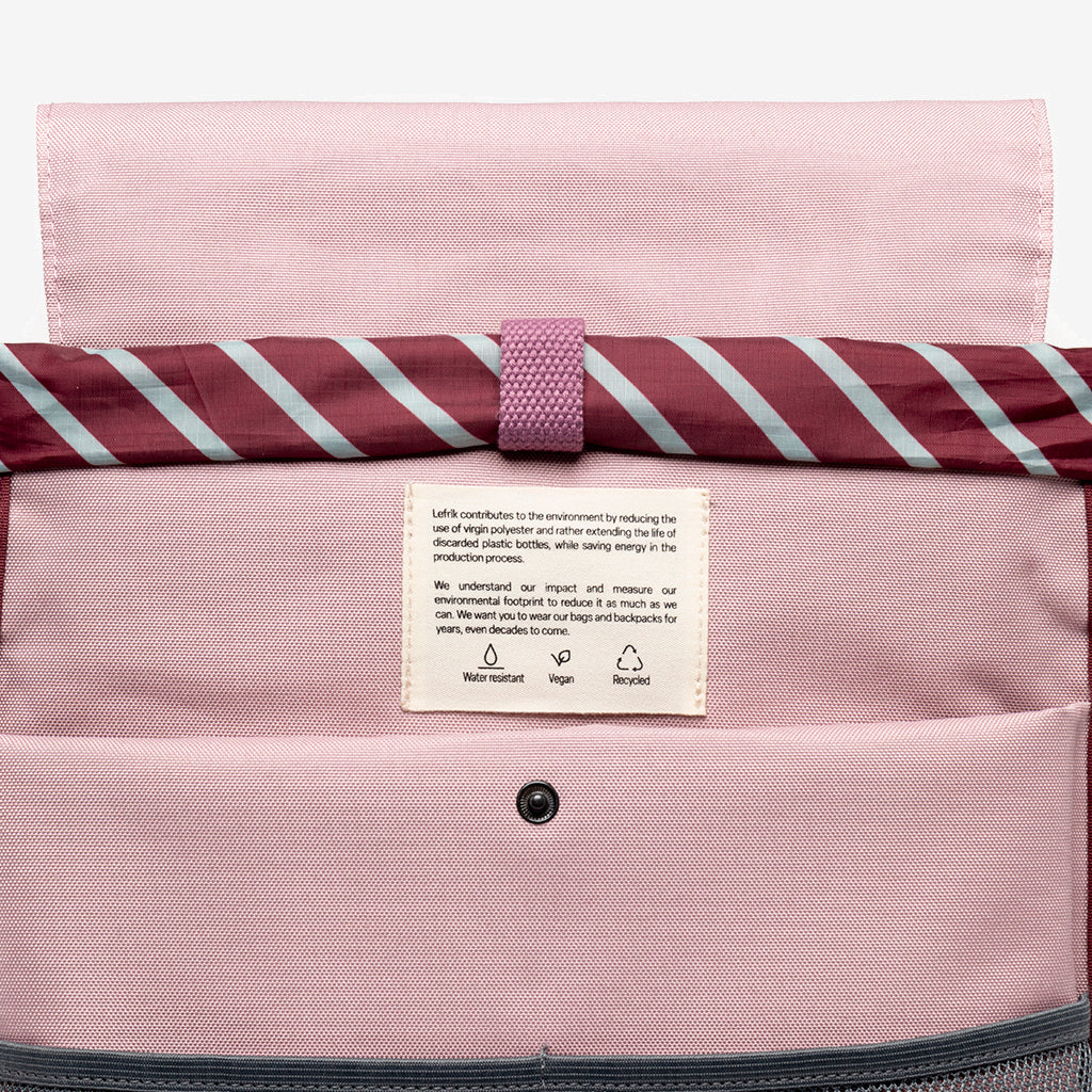 Its OXFORD RPET fabric makes it lightweight, water resistant and vegan. Wash cold. Air dry.